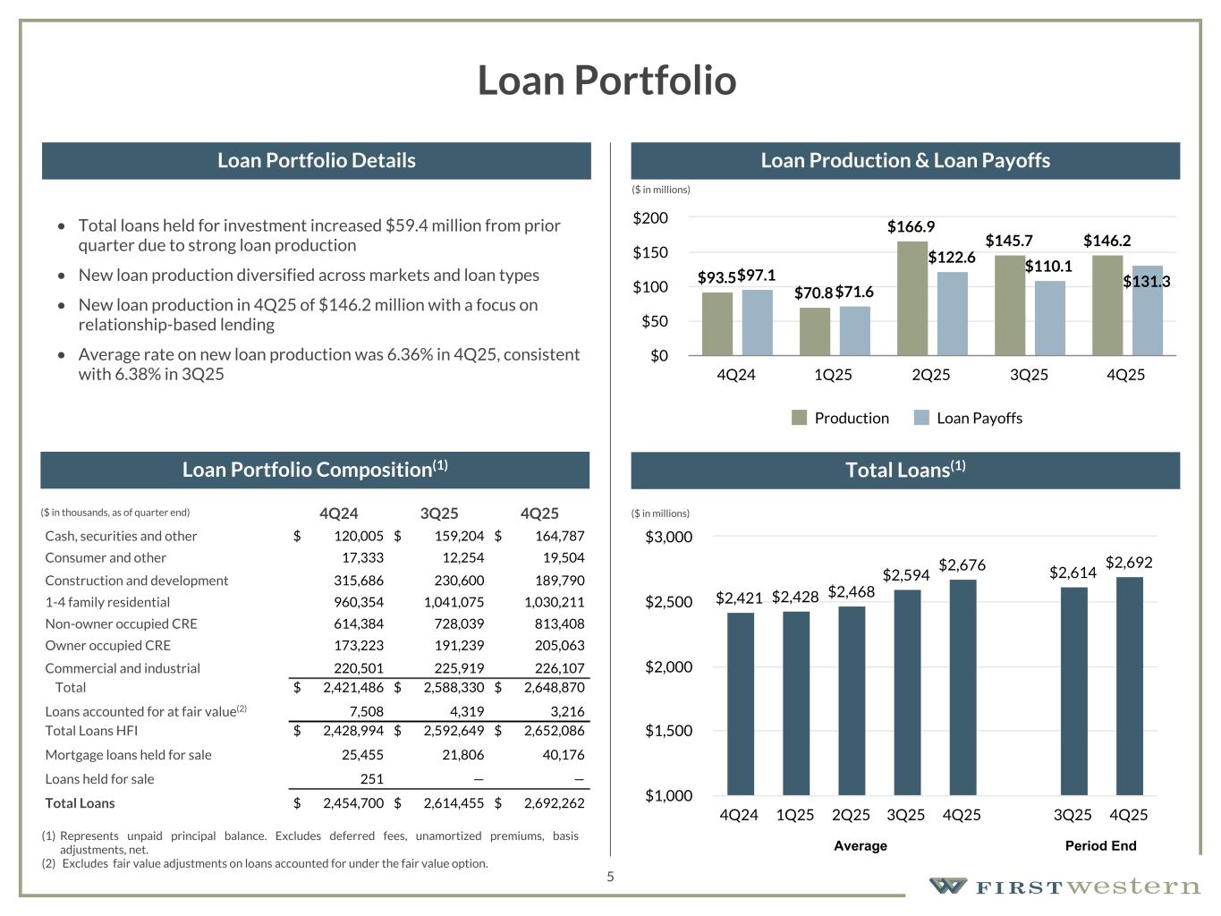 •Total loans held for investment increased $59 million, or 2.3%, from $2.59 billion in Q3 2025 to $2.65 billion in Q4 2025