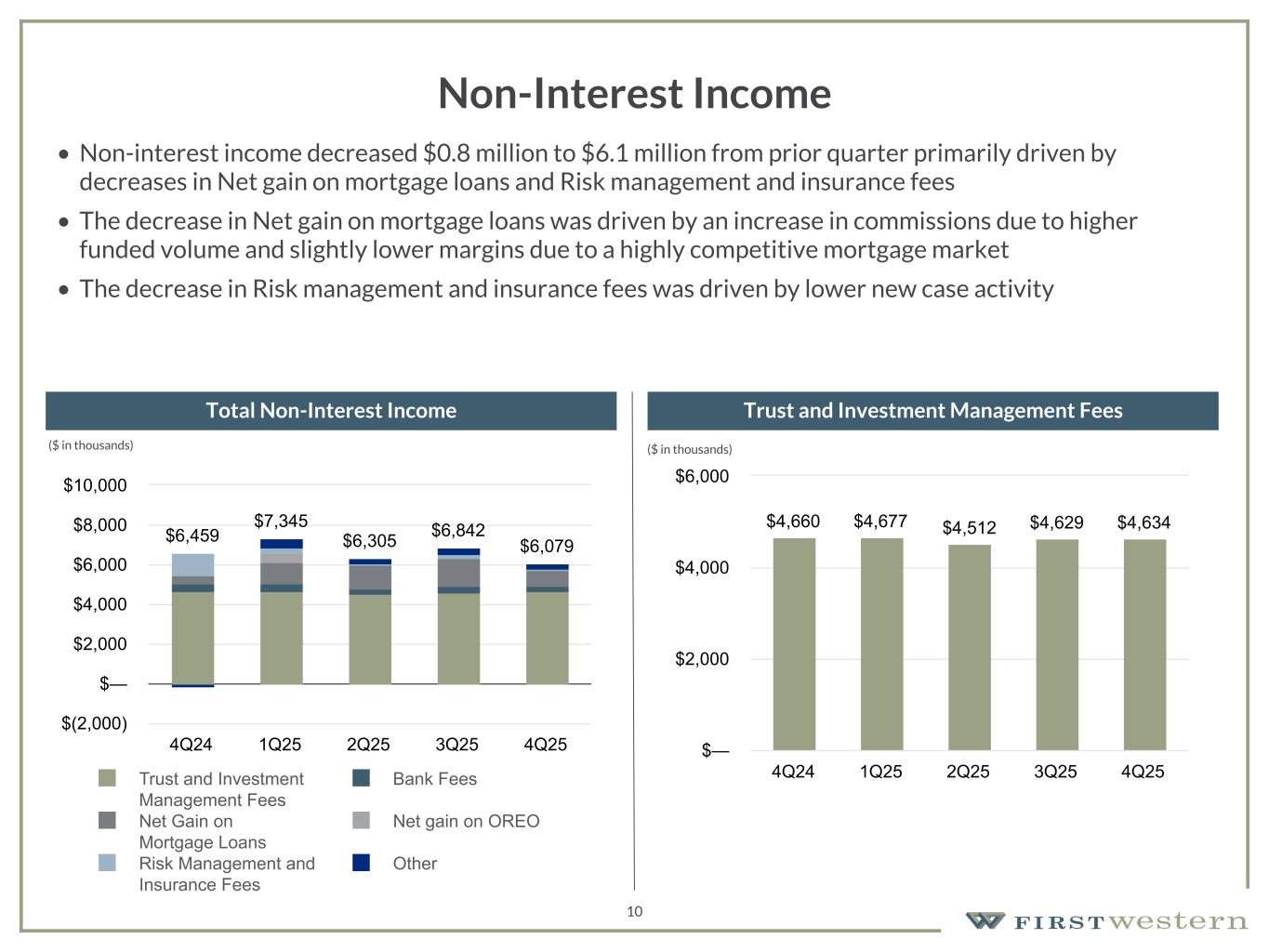 Relative to the fourth quarter of 2024, Non-interest income decreased $0.4 million, primarily driven by a decrease in Risk management and insurance fees, partially offset by an increase in Net gain on mortgage loans and a decrease in Net loss on loans held for sale.