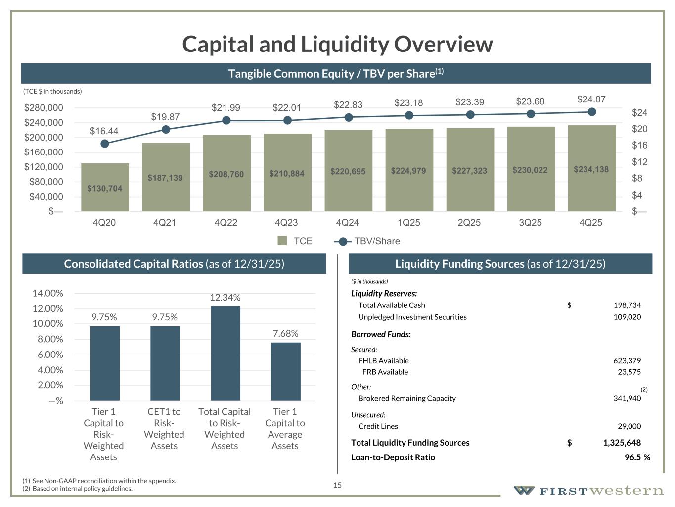 157 180 196 164 166 168 62 94 111 154 161 132 122 125 129 76 78 86 255 255 255 Chart color Table color Special Headlines Slide Headlines / Text on light background Primary Colors Secondary Colors Primary Background / Call Out Boxes / Text on dark background Chart color Table Color Tertiary Colors Chart color Table Color Chart Color Chart Color Approved Fonts AaBbCc 123 Lora (bold) Slide Headlines / Special Headlines AaBbCc 123 Lato (regular, bold, italics) Body Copy / Subheadings / Small Text Descriptions 15 Capital and Liquidity Overview Liquidity Funding Sources (as of 12/31/25) (1) See Non-GAAP reconciliation within the appendix. (2) Based on internal policy guidelines. Consolidated Capital Ratios (as of 12/31/25) Tangible Common Equity / TBV per Share(1) ($ in thousands) Liquidity Reserves: Total Available Cash $ 198,734 Unpledged Investment Securities 109,020 Borrowed Funds: Secured: FHLB Available 623,379 FRB Available 23,575 Other: Brokered Remaining Capacity 341,940 Unsecured: Credit Lines 29,000 Total Liquidity Funding Sources $ 1,325,648 Loan-to-Deposit Ratio 96.5 % 9.75% 9.75% 12.34% 7.68% Tier 1 Capital to Risk- Weighted Assets CET1 to Risk- Weighted Assets Total Capital to Risk- Weighted Assets Tier 1 Capital to Average Assets —% 2.00% 4.00% 6.00% 8.00% 10.00% 12.00% 14.00% (2) (TCE $ in thousands) $130,704 $187,139 $208,760 $210,884 $220,695 $224,979 $227,323 $230,022 $234,138 $16.44 $19.87 $21.99 $22.01 $22.83 $23.18 $23.39 $23.68 $24.07 TCE TBV/Share 4Q20 4Q21 4Q22 4Q23 4Q24 1Q25 2Q25 3Q25 4Q25 $— $40,000 $80,000 $120,000 $160,000 $200,000 $240,000 $280,000 $— $4 $8 $12 $16 $20 $24